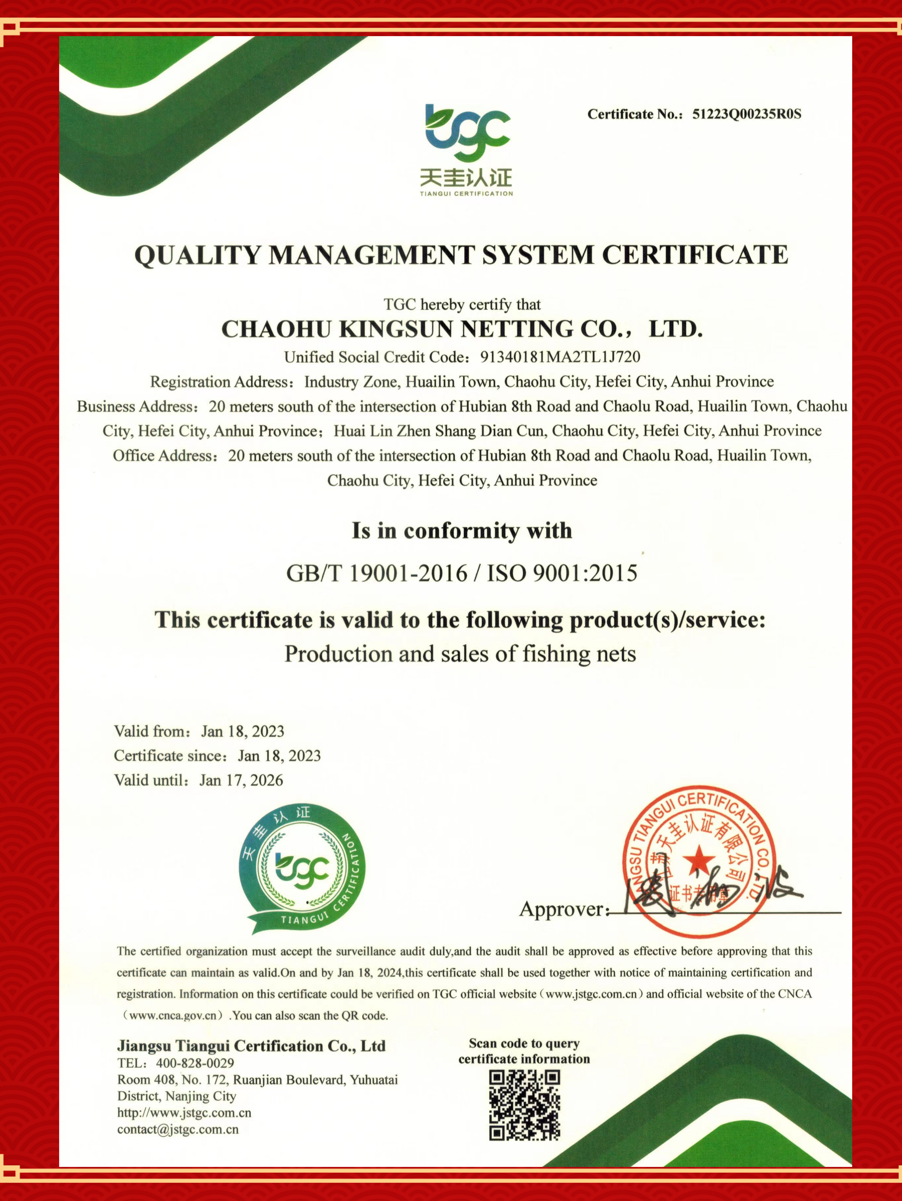 ADDRESS : CHAOHU INDUSTRIEL ZONE, CHAOLU ROAD, HUAILIN TOWN, CHAOHU CITY, ANHUI PROVINCE, CHINA